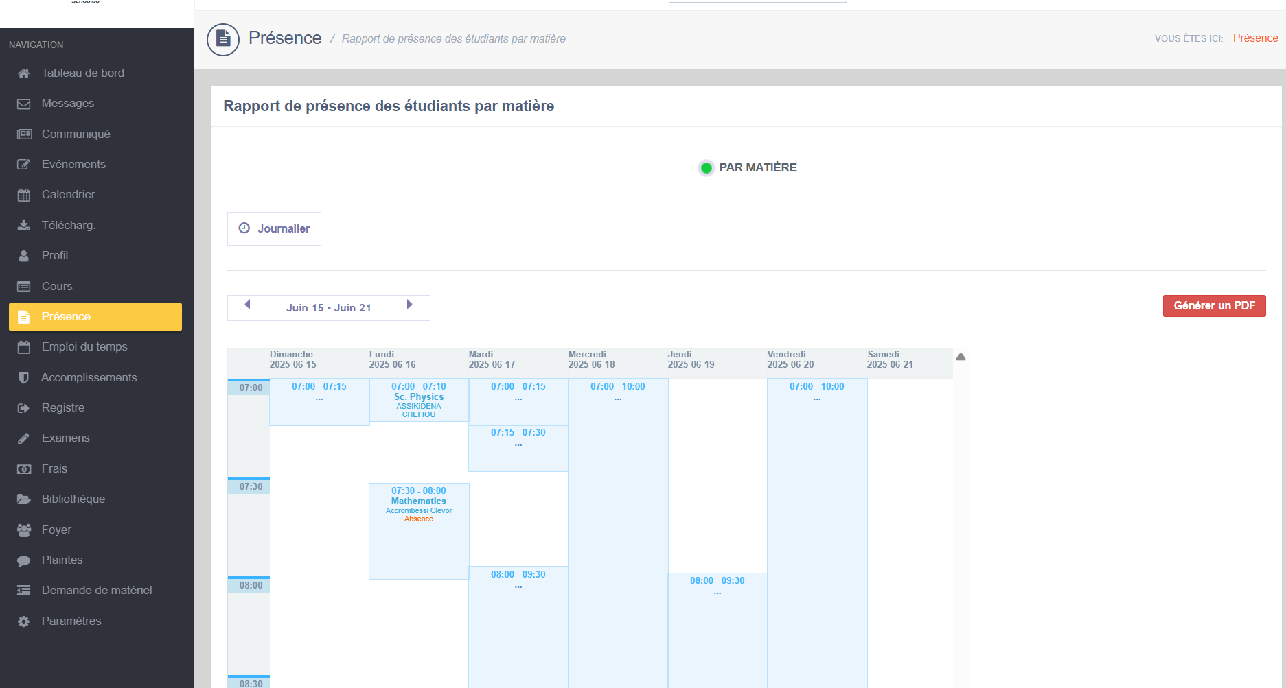 Exporter les données telles que les étudiants, les paiements, les absences, ...